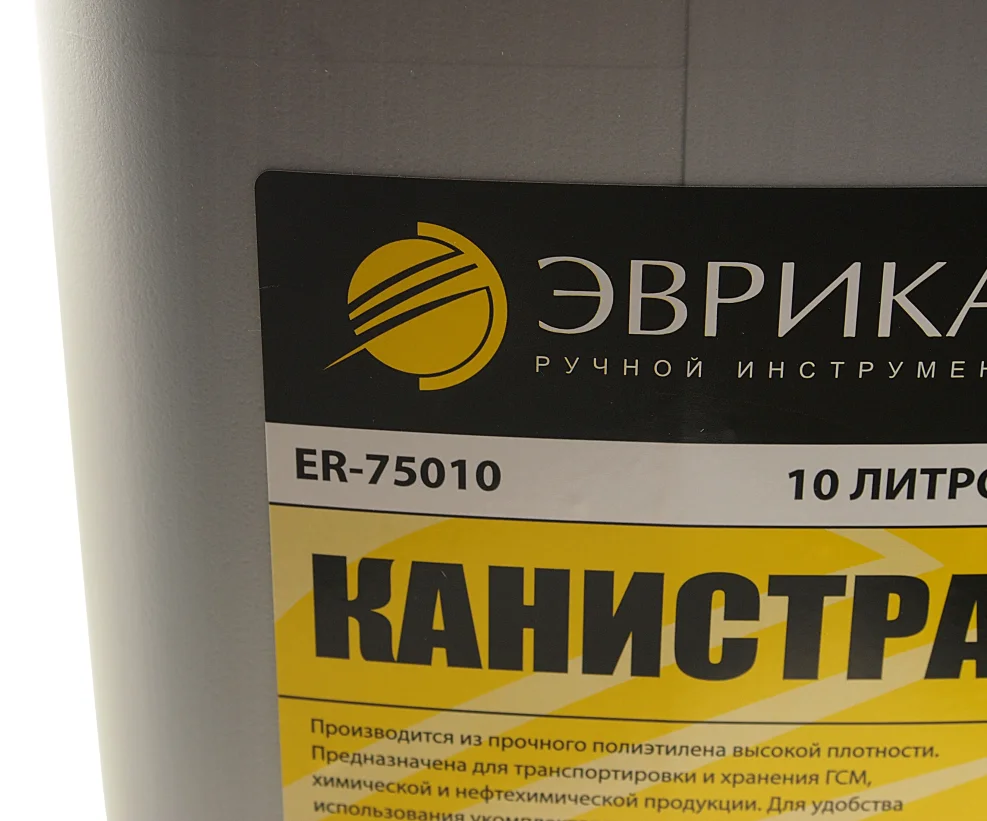 Канистра полиэтиленовая ЭВРИКА ER-75010: прочная емкость для хранения ГСМ. Канистра оснащена носиком-лейкой, который позволяет легко слить жидкость. Производится из прочного полиэтилена высокой плотности. Технические характеристики: Объем: 10 л Материал: пластиковая Тип: одноёмкостная Форма: вертикальная
