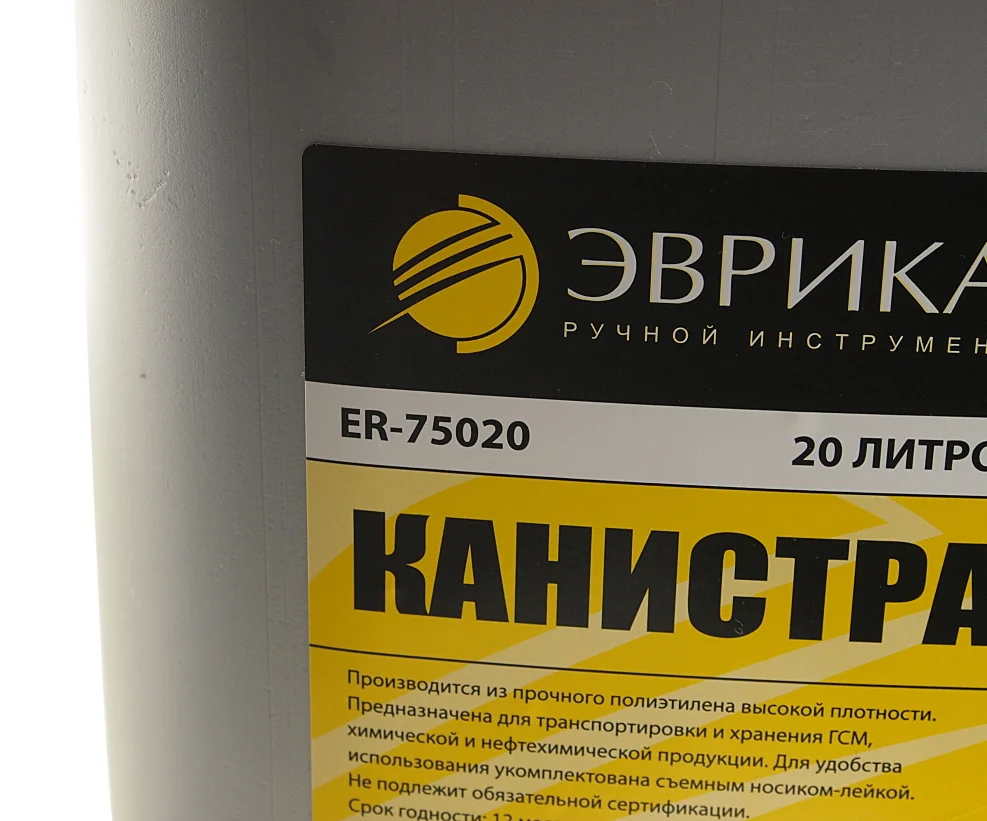 Канистра полиэтиленовая ЭВРИКА ER-75020: прочная емкость для хранения ГСМ. Канистра оснащена носиком-лейкой, который позволяет легко слить жидкость. Производится из прочного полиэтилена высокой плотности. Технические характеристики: Объем: 20 л Материал: пластиковая Тип: одноёмкостная Форма: вертикальная.