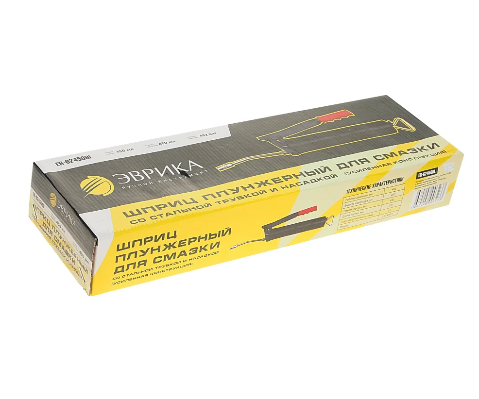 Плунжерный шприц для смазки ЭВРИКА ER-62450BL применяется для технического обслуживания узлов и агрегатов. Модель рассчитана на перекачку смазок. Благодаря пневматическому исполнению обеспечивается непрерывная подача смазки. Технические характеристики: Тип: шприц Работа с картриджем 400 гр: да Работа с картриджем 85 гр: нет Заправка нагнетателем: нет Заправка смазкой: да Рабочее Давление: 482 атм Емкость смазки, см куб: 400 Комплектация: трубка+насадка Прозрачный корпус: нет Одноручный шприц: да Клапан для удаления воздуха: нет Работа с картриджем 450 гр: нет Количество аккумуляторов в комплекте: нет Стандарт картриджа PULL-OFF по DIN: 1284