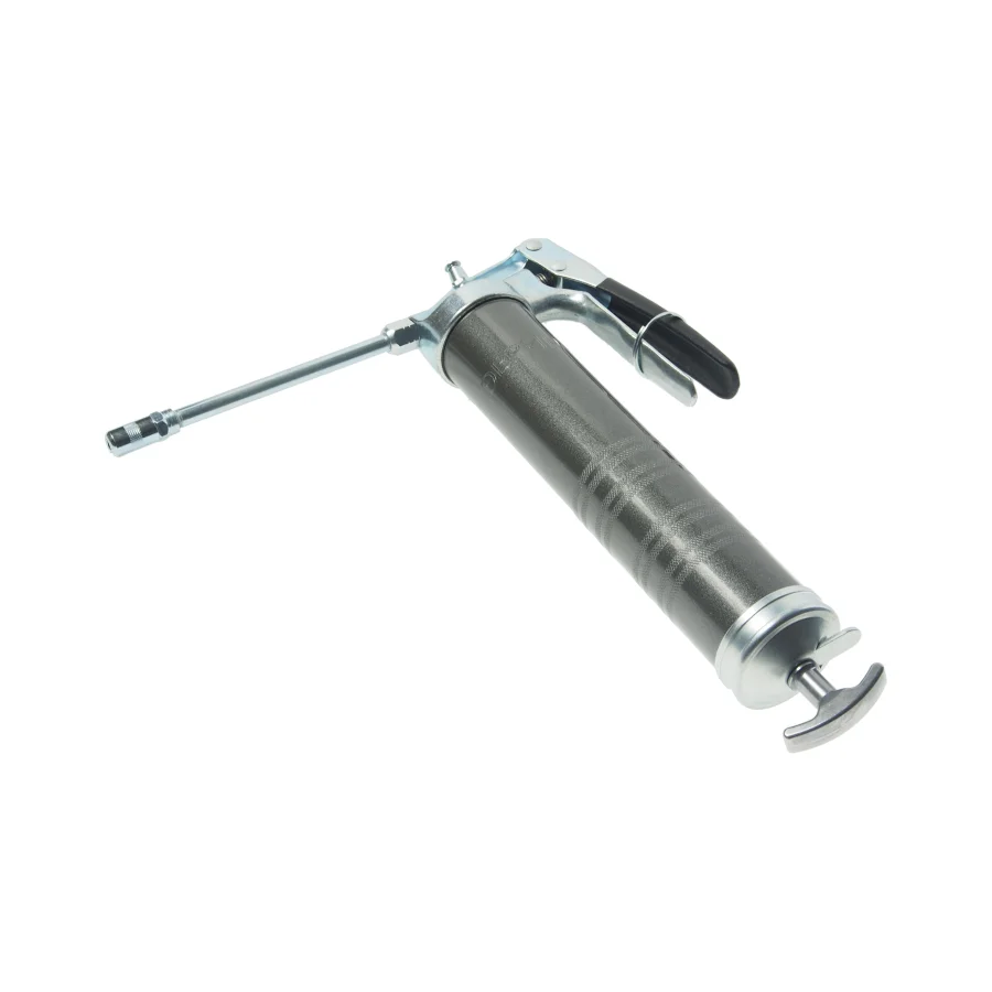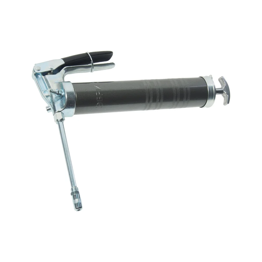 Плунжерный шприц с воздушным клапаном, для одной руки ЭВРИКА ER-44465N позволяет держать вторую руку свободной для направления шланга или иных действий. Форма изделия обеспечивает надежное удержание в ладони даже при усиленном выдавливании смазки. Технические характеристики: Вес: 1,566 кг Тип: шприц Работа с картриджем 400 гр: да Работа с картриджем 85 гр: нет Заправка смазкой: да Рабочее Давление: 408 атм Емкость смазки, см куб: 400 Комплектация: носик Прозрачный корпус: нет Одноручный шприц: да Клапан для удаления воздуха: да Работа с картриджем 450 гр: нет Стандарт картриджа PULL-OFF по DIN: 1284