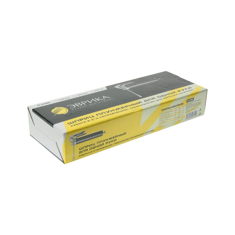 Плунжерный шприц ER-44480S от ЭВРИКА предназначен для интенсивной работы в условиях больших нагрузок. Он способен работать в двух направлениях, что делает его особенно удобным в использовании. Корпус шприца изготовлен из высокопрочных материалов, что обеспечивает его надежность даже при интенсивной эксплуатации. Форма изделия позволяет надежно удерживать его в руке, даже при сильном давлении, что делает процесс смазки более удобным. Плунжерный шприц активно используется в техническом обслуживании транспортных средств и других агрегатов. Он предназначен для смазки деталей различных узлов и соединений, что значительно упрощает и ускоряет процесс технического обслуживания. Технические характеристики: Рабочее давление: 244 бар Максимальное давление: 544 бар Подача: 0,7 г/нажатие Ёмкость: 400 см3 Вес: 1,19 кг