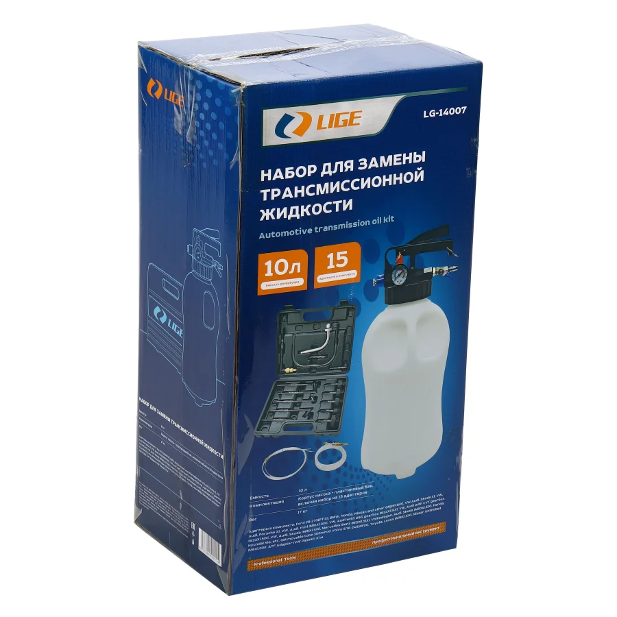 "Бак 10л Трубки 4шт Адаптер x15 Размер адаптера: Ford 1/8-27(NPT) Универсальный разъем для BMW, Honda, Nissan и т. д. Volkswagen, Audi, Škoda Volkswagen, Audi, Porsche Volkswagen, Audi, mini (M10X1.0) Volkswagen, Audi с коробкой передач DSG (M24X1.5) Volkswagen, Audi с коробкой передач CVT (M22X1.5) Volkswagen, Audi, Skoda (M18X1.5) Mercedes-Benz (M12X1.5) Volkswagen, Audi, Skoda (M30x1.5) Honda, Hyundai Kia и т. д. Универсальная подвижная трубка 300 мм Volvo 5/16-24 (UNF)X1 Toyota, Lexus(M18X1.5)X1 Nissan Unlimited(M8X1.0)X1 ATF Адаптер (VW Passat)X1 "
