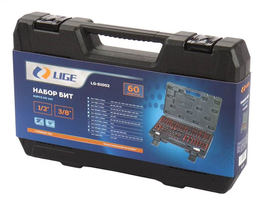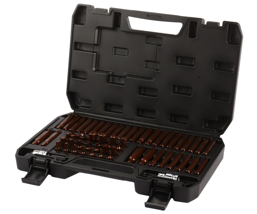 9шт, Star T20,25,27,30,40,45,50,55,60x75мм 4шт, Ribe R6,8,10,12x75мм 9шт, Hex H4,5,6,7,8,9,3/8,10,12x75мм 8шт, Spline M5,6,8,9,10,12,14,16x75мм 2шт, Square S8,10x75мм H4,5,6,7,8,9 10шт, Hex H10,12,14,17x30мм 1шт, Slotted SL8x30мм 1шт, Phillips PH2x30мм 5шт, Spline M5,6,8,10,12x30мм 9шт, Torx T20,25,27,30,40,45,50,55,60x30мм 2шт, адаптер: 1/2", 3/8" Материал: S2