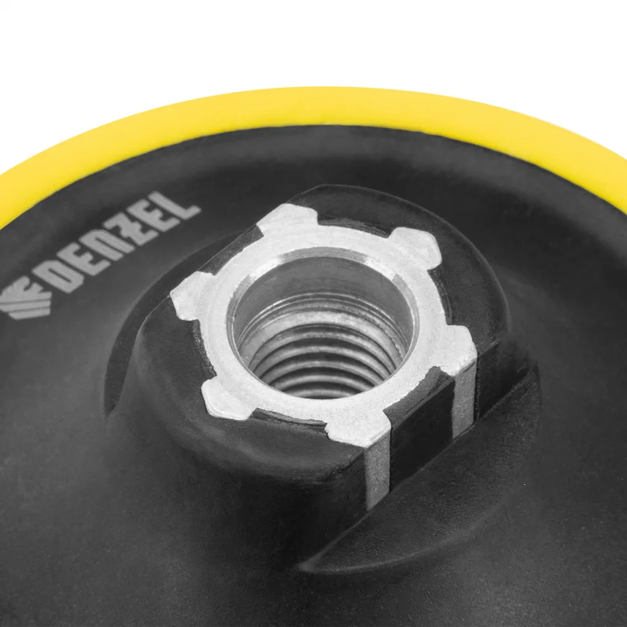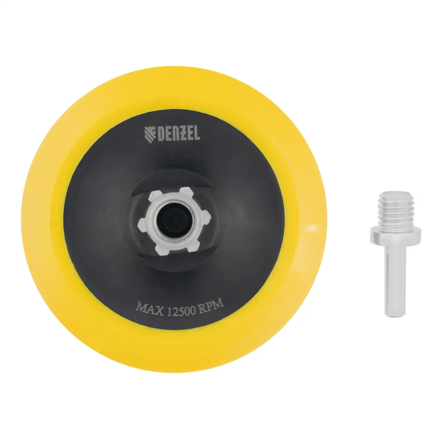Тарелка опорная Denzel 76247 диаметром 115 мм, с липучкой и адаптером с М14 на d8, мягкая, устанавливается на дрель или углошлифовальную машину (УШМ). Используется для крепления абразивных или полировальных кругов на ворсовой основе, позволяет подготовить поверхность для дальнейшей обработки или придать ей финишную гладкость.
