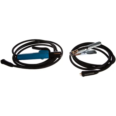 В комплект входят кабель с электрододержателем и кабель с клеммой для подключения к массе, до 300А.