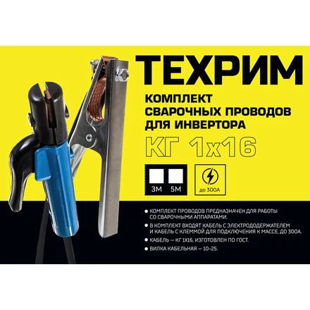 Комплект проводов ТЕХРИМ КГ16 5 м предназначен для работы со сварочными аппаратами.