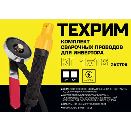 Комплект сварочных проводов ТЕХРИМ К16 3 м Экстра предназначен для работы со сварочными аппаратами.