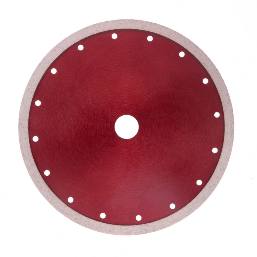 - Сплошная форма и перфорированный корпус позволяют добиться высокого качества реза и предотвращают появление сколов.