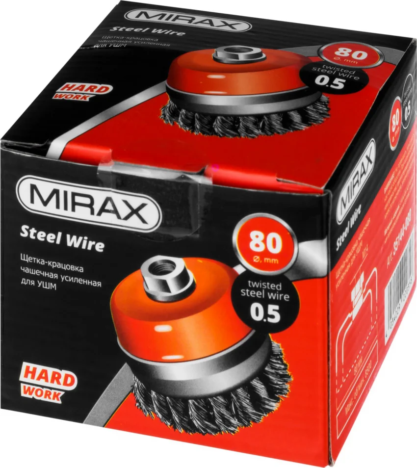MIRAX 80 мм, жгутированная стальная проволока 0.5 мм, чашечная щетка-крацовка для УШМ (35144-080)