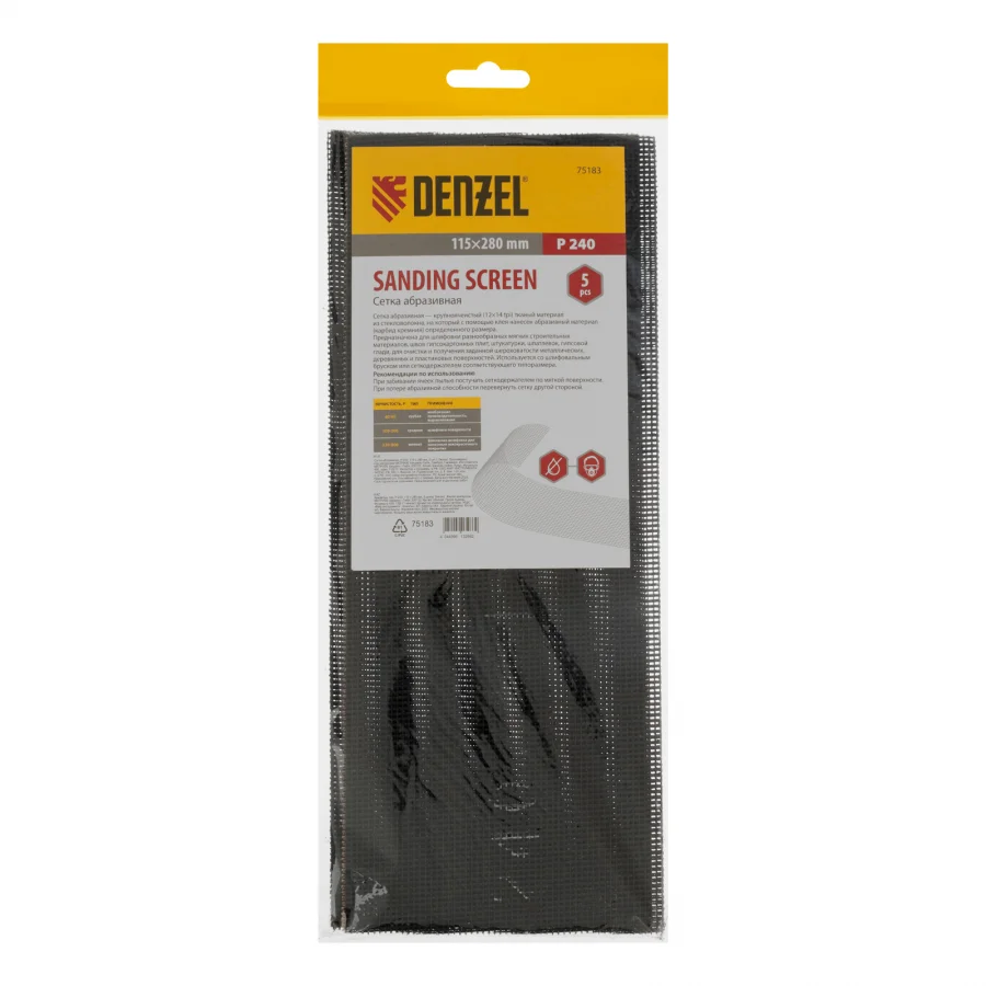 Абразивная сетка Denzel 75183, 115 х 280 мм, с зернистостью P 240, 5 шт. в упаковке, применяется для финишной обработки и придания гладкости зашпаклеванным поверхностям, а также твердой древесине и металлу. Она бережно снимает тонкий слой материала и лакокрасочного покрытия, удаляет ржавчину и заусенцы, сглаживает неровности. Абразивный слой обладает высоким ресурсом, т.к. зерна карбида кремния стачиваются медленно. Сетку устанавливают на ручные шлифовальные приспособления — бруски и сеткодержатели соответствующего типоразмера.