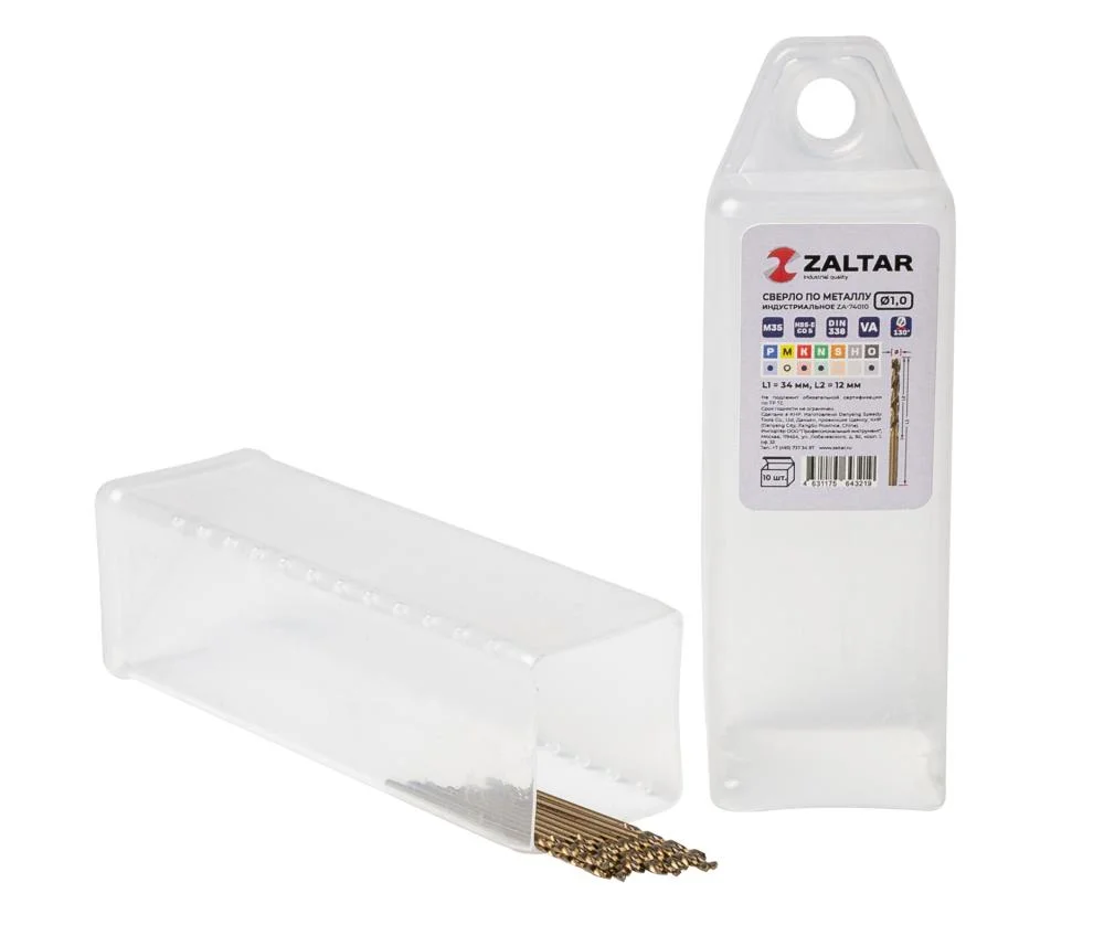 Комплект свёрл по металлу индустриальных, 10 шт, DIN 338, HSS-E Co5, Тип VA, 5xD, Ø1.00 мм