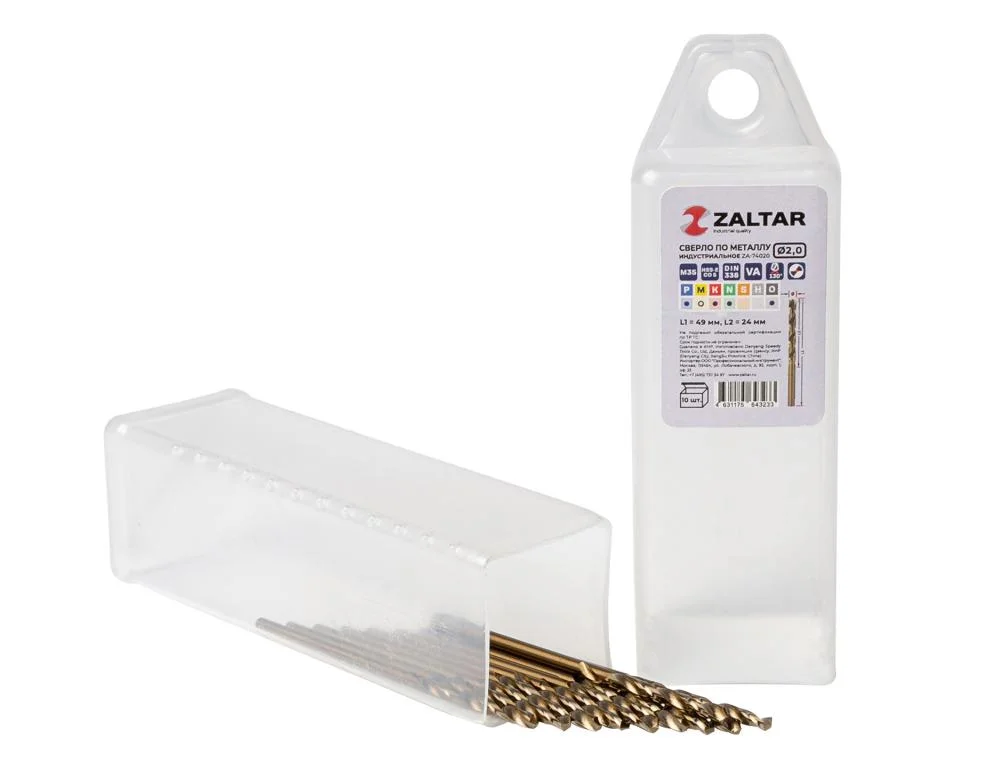 Комплект свёрл по металлу индустриальных, 10 шт, DIN 338, HSS-E Co5, Тип VA, 5xD, Ø2.00 мм