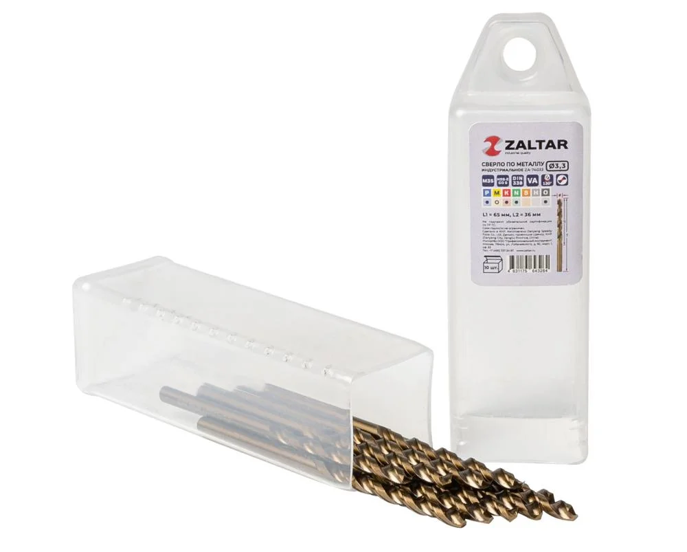 Комплект свёрл по металлу индустриальных, 10 шт, DIN 338, HSS-E Co5, Тип VA, 5xD, Ø3.30 мм