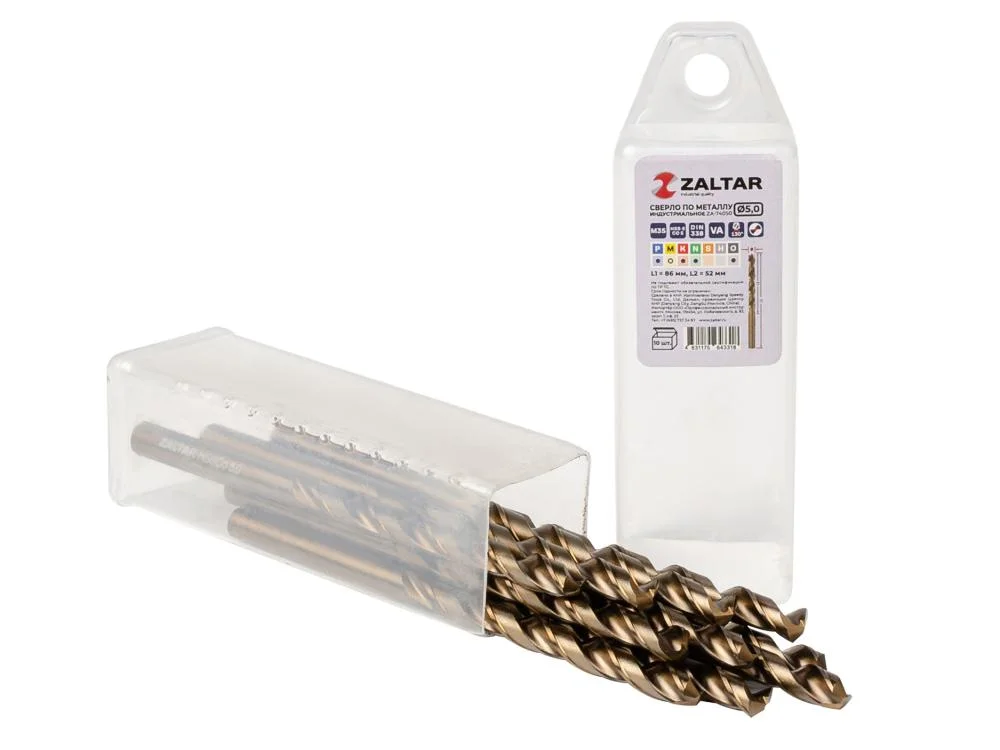 Комплект свёрл по металлу индустриальных, 10 шт, DIN 338, HSS-E Co5, Тип VA, 5xD, Ø5.00 мм