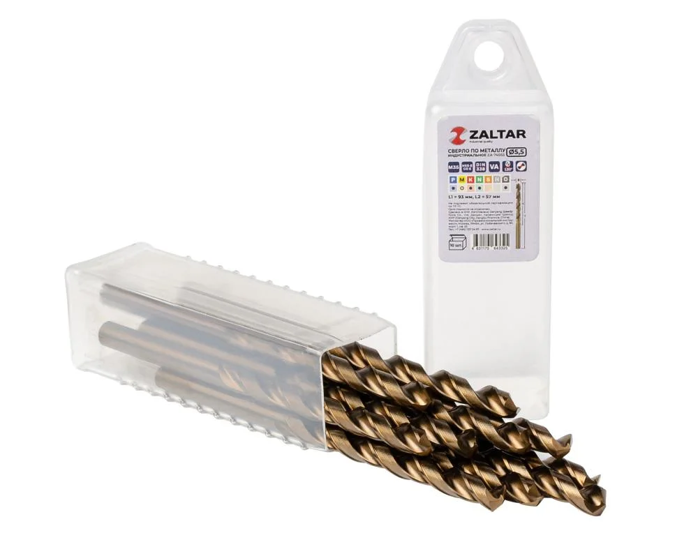 Комплект свёрл по металлу индустриальных, 10 шт, DIN 338, HSS-E Co5, Тип VA, 5xD, Ø5.50 мм