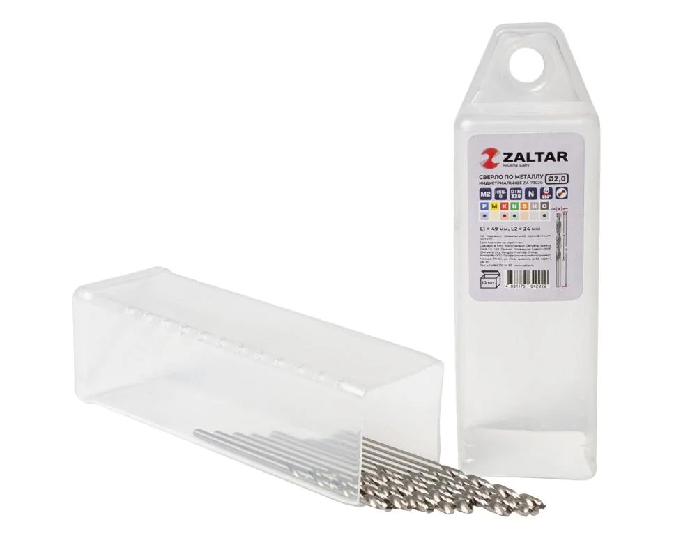 Комплект свёрл по металлу индустриальных, 10 шт, DIN 338, HSS-G, Тип N, 5xD, Ø2.00 мм