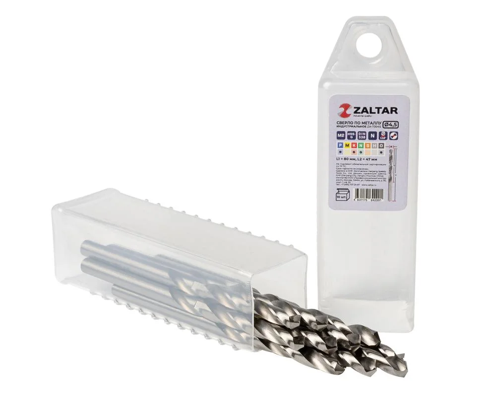 Комплект свёрл по металлу индустриальных, 10 шт, DIN 338, HSS-G, Тип N, 5xD, Ø4.50 мм