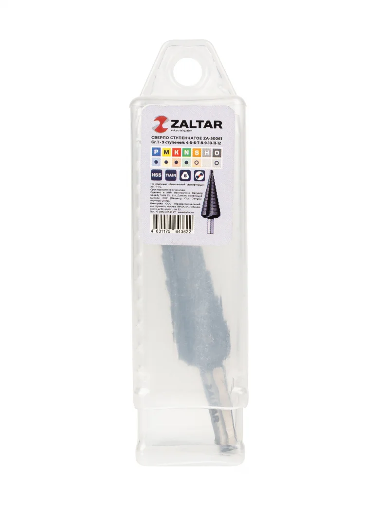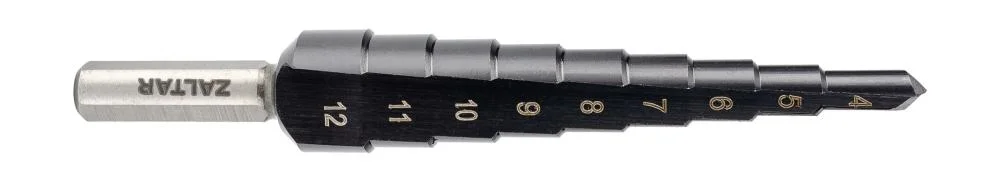 Сверло ступенчатое, HSS TiAlN, Gr.1, Ø4-12 мм, прямая канавка, трёхплоскостной хвостовик