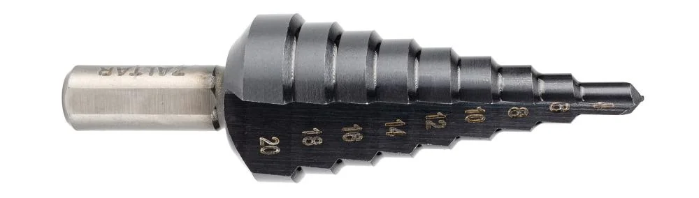 Свёрла ступенчатые - HSS TiAlN - Прямая стружечная канавка - Трехплоскостной хвостовик - Шлифовка CBN (кубический нитрид бора) - Оптимизированная геометрия режущей кромки
