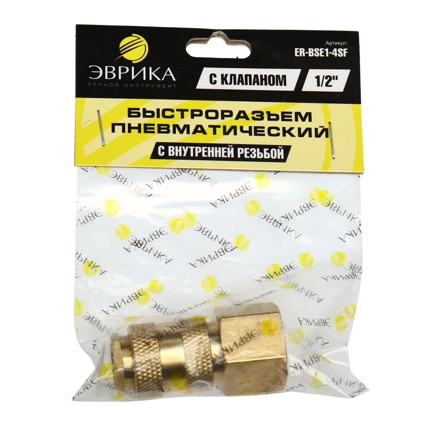 Быстроразъем пневматический с клапаном: внутренняя резьба 1/2" ЭВРИКА ER-BSE1-4SF предназначен для соединения различных узлов пневмосистем. Изготовлен из латуни. Созданная конструкция обладает высокой надежностью и герметичностью. Технические характеристики: Вид: разъем Соединитель: Рапид(EURO) Посадочный размер: 1/2F Рапид(EURO): мама Тройник: нет