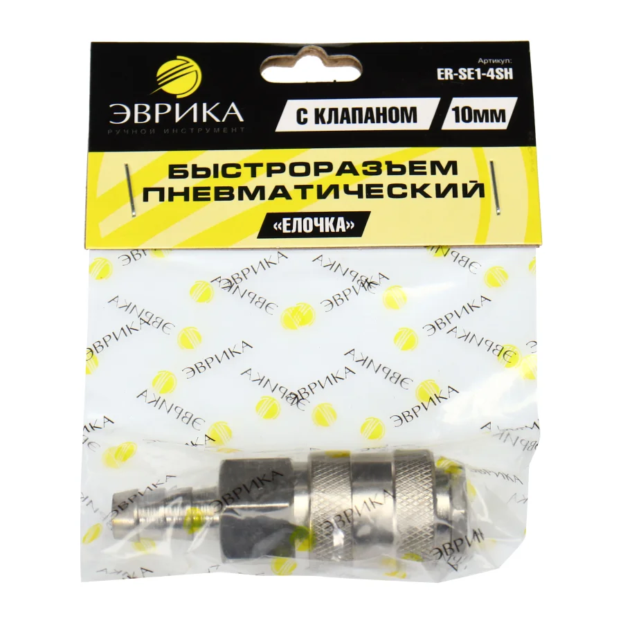 Быстроразъем пневматический ER-SE1-4SH с клапаном елочка 10мм. Используется для соединения различных элементов и частей пневмоинструмента. Осуществляется переход с наружной резьбы, на быстросъемное соединение рапид. Быстроразъем пневматический характеристики с клапаном елочка 10 мм Технические характеристики: Вес: 0,081 кг