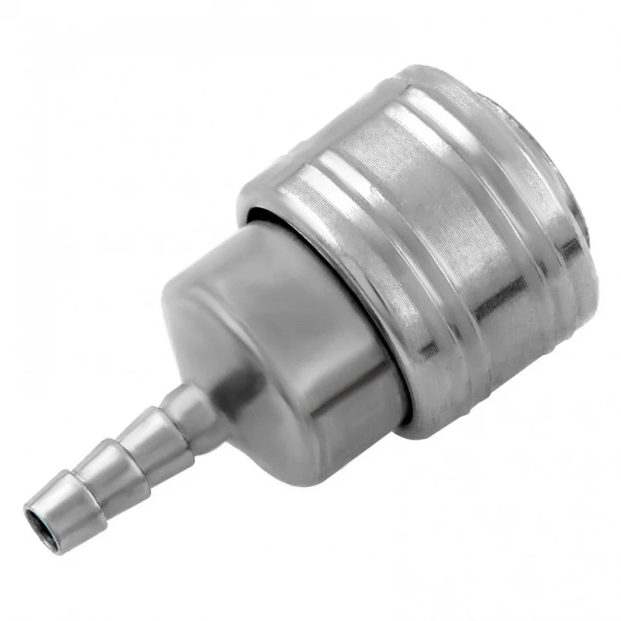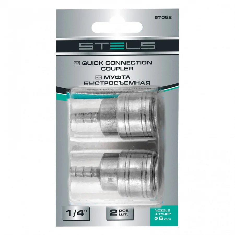 Универсальная быстросъемная муфта Stels 57052 типа «мама» предназначена для присоединения краскораспылителя, нейлера, продувочного пистолета и других пневмоинструментов к компрессору через шланг диаметром 6 мм. Соединение Рапид (Евро) обеспечивает простую стыковку с инструментом, а штуцер «елочка» — со шлангом.