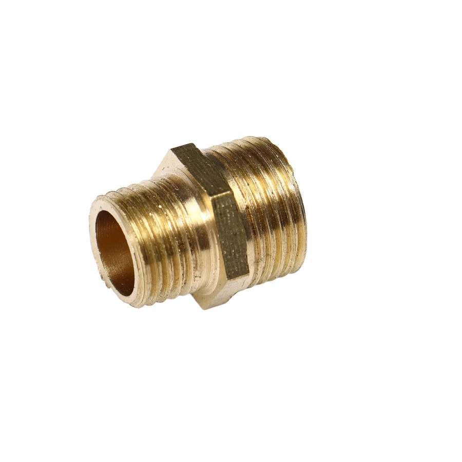 Соединитель резьбовой : наруж.резьба 3/8"x1/4″ используется для соединения двух шлангов, позволяя увеличить его длину. Благодаря креплению, адаптер прочно фиксирует шланги, исключая протекание. Переходник выполнен из латуни, что позволяет его использовать для подачи и технических жидкостей.
