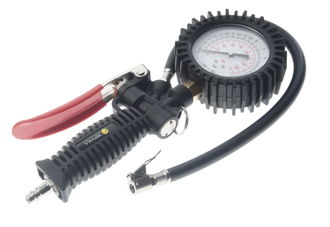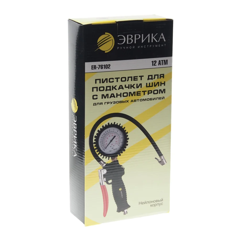 Пистолет для подкачки шин ER-76102 с манометром 12 АТМ для грузовых автомобилей от ЭВРИКА, выполненный в прочном нейлоновом корпусе, станет незаменимым помощником в регулярном использовании. Его отличительной особенностью является длинный и широкий курок, что значительно упрощает процесс подкачки. Большой циферблат манометра обеспечивает высокую точность показаний, позволяя контролировать давление с предельной точностью. Технические характеристики: Тип инструмента: пистолет для подкачки шин Максимальное давление: 12 атм Тип манометра: механический Вес: 0.655 кг