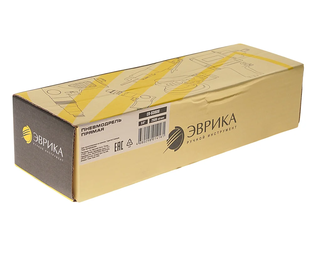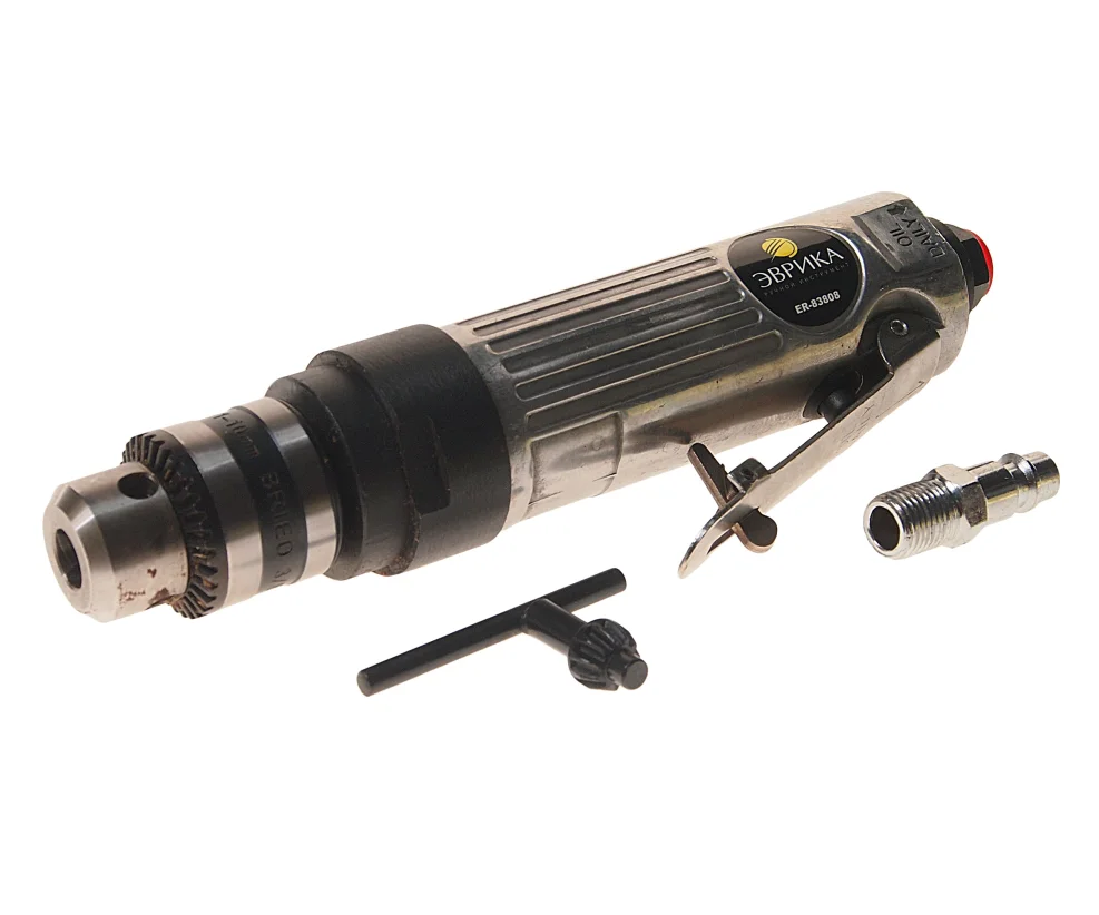 Пневматическая дрель 3/8 ЭВРИКА ER-83808 предназначена для сверления отверстий в различных материалах. Её рабочий ресурс впечатляет. Корпус инструмента выполнен из металла, что обеспечивает его прочность и устойчивость к механическим повреждениям. Ключевой патрон надёжно фиксирует рабочую оснастку, обеспечивая надёжность инструмента. Широкая клавиша «Пуск» удобна для нажатия при любом хвате инструмента. Технические характеристики: Тип инструмента: дрель. Боковая рукоятка отсутствует. Реверс отсутствует. Тип соединения: рапид(EURO). Размер патрона: 10 мм. Диаметр воздушного штуцера: 1/4F дюйм. Частота вращения шпинделя: 2500 об/мин. Максимальный диаметр сверления по металлу: 10 мм. Упаковка: коробка. Тип патрона: ключевой. Крепление патрона: 3/8. Преимущества: Прочный и долговечный корпус. Устойчивость к перегрузкам и перегреву. Возможность длительной работы без остановки. Низкая пожаро- и взрывоопасность рабочего процесса благодаря работе на сжатом воздухе. Малый вес благодаря отсутствию двигателя.