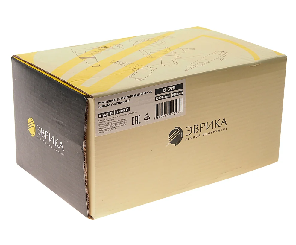 Пневмошлифмашинка орбитальная 1/4 10000 об/мин р/в 226 л/мин.d круга 6" ЭВРИКА служит для шлифования и полирования различных поверхностей. Конструкция с металлическими компонентами обладает долгим сроком службы. Модель оснащена мешком и шлангом для сбора пыли для поддержания рабочего места в чистоте.Работа на сжатом воздухе обеспечивает большой рабочий ресурс по сравнению с электроинструментом. Орбитальная пневмошлифмашинка ЭВРИКА ER-82131 служит для шлифования и полирования различных поверхностей. Конструкция с металлическими компонентами обладает долгим сроком службы. Модель оснащена мешком и шлангом для сбора пыли для поддержания рабочего места в чистоте. Работа на сжатом воздухе обеспечивает больший рабочий ресурс по сравнению с электроинструментом.