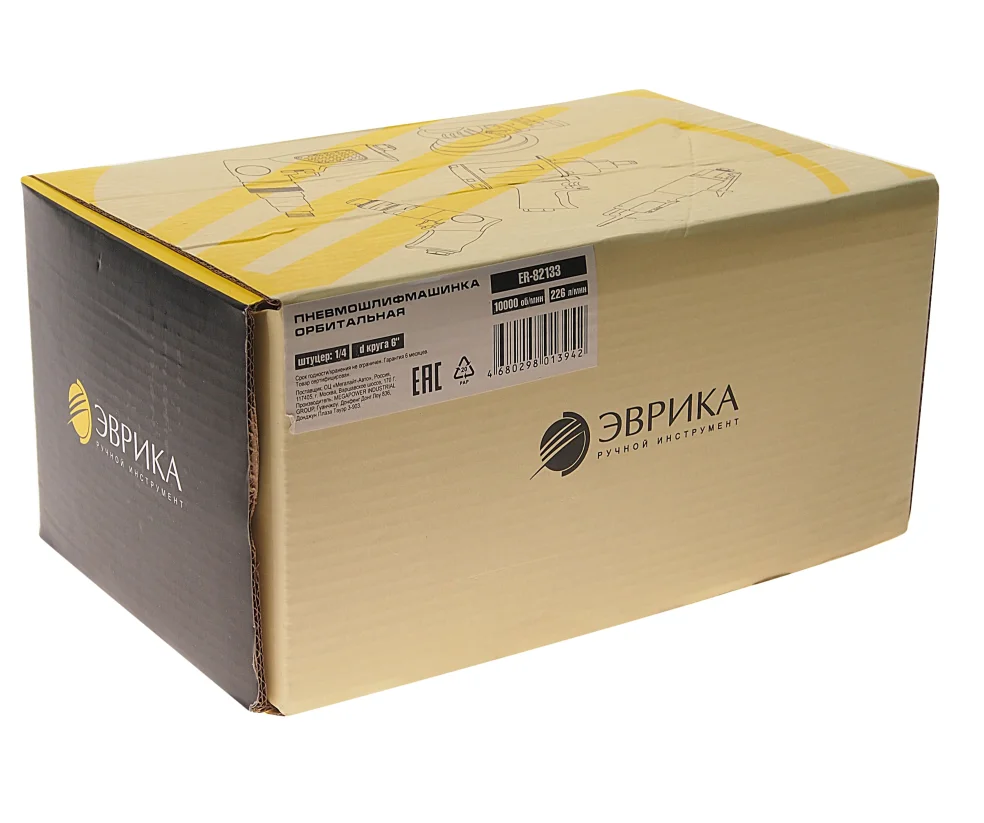 Пневмошлифмашинка орбитальная 1/4 10000 об/мин р/в 226 л/мин.d круга 6" ЭВРИКА ER-82133 служит для шлифования и полирования различных поверхностей. Конструкция с металлическими компонентами обладает долгим сроком службы. Модель оснащена мешком и шлангом для сбора пыли, что дает возможность поддерживать рабочее место в чистоте. Работа на сжатом воздухе обеспечивает больший рабочий ресурс по сравнению с электроинструментом. Технические характеристики: Давление: 6.14 атм Расход воздуха: 226 л/мин Диаметр воздушного штуцера: 1/4"