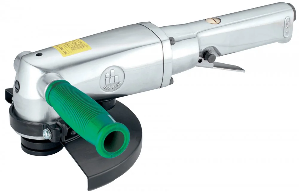 Описание Пневматическая скоростная углошлифовальная машина с максимальным диаметром диска 180 мм. Применяется в строительстве и металлообработке для резки, шлифования и зачистки изделий из камня, металла и других материалов. Для удобства пользователя предусмотрена возможность установки боковой рукоятки, как с левой, так и с правой стороны инструмента. Конструкция шпинделя изделия не позволяет использовать рабочие насадки с резьбовой ступицей. При работе обязательно применять средства защиты рук, органов зрения и слуха, а при обработке металлов защитные перчатки, изготовленные из материалов с огнестойкой пропиткой. Область применения Пневматическая высокоскоростная углошлифовальная машинка Jonnesway предназначена для резки, шлифования и зачистки изделий из камня, металла и других материалов в мастерских и цехах, оборудованных воздушной магистралью с давлением воздуха не ниже 6 атм. или компрессором такой же мощности, персоналом, имеющим соответствующую квалификацию, знакомым с правилами техники безопасности, условиями эксплуатации и навыками работы с пневмомеханическим инструментом. Технические характеристики Диаметр диска 180 мм Толщина диска 2-6 мм Посадочный диаметр ступицы диска 22 мм Размер резьбы привода 5/8"-11UNC Частота свободного вращения 7000 об/мин Давление в магистрали, max 6,3 атм Расход воздуха, средний 257 л Штуцер подключения 3/8"DR Диаметр воздушного шланга 1/2"DR/12,7 мм Размер (длина) 343 Вес 3,1 кг Направление выхлопа Боковое Мощность 1.03 кВт
