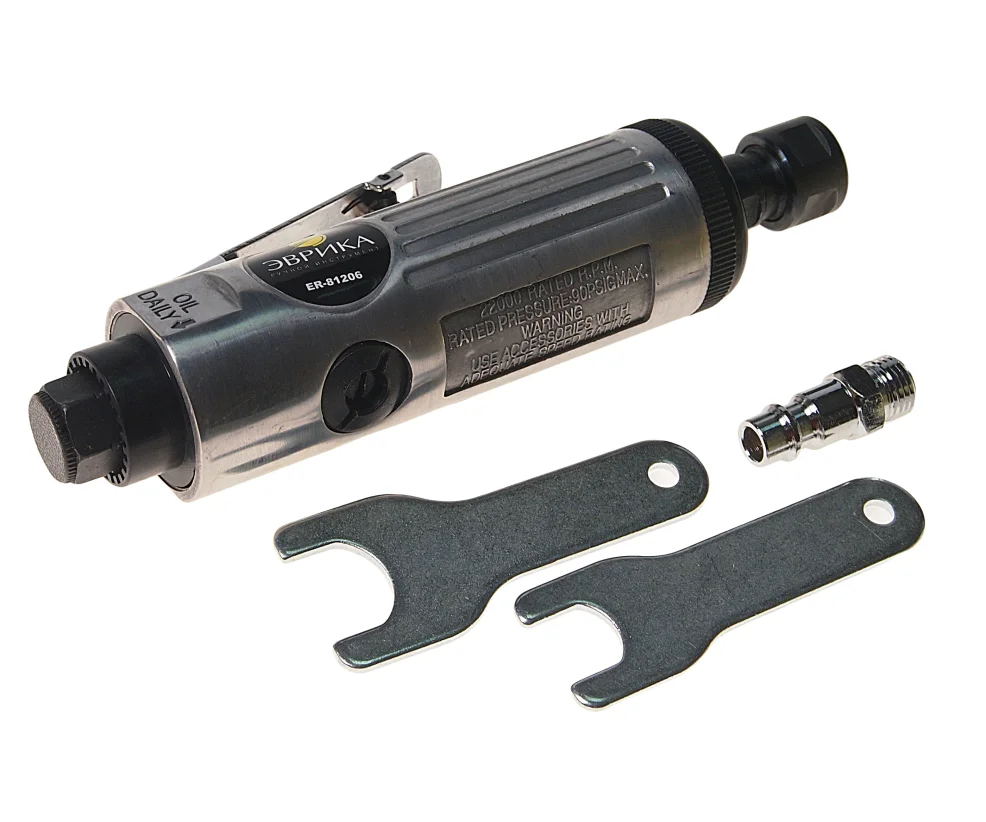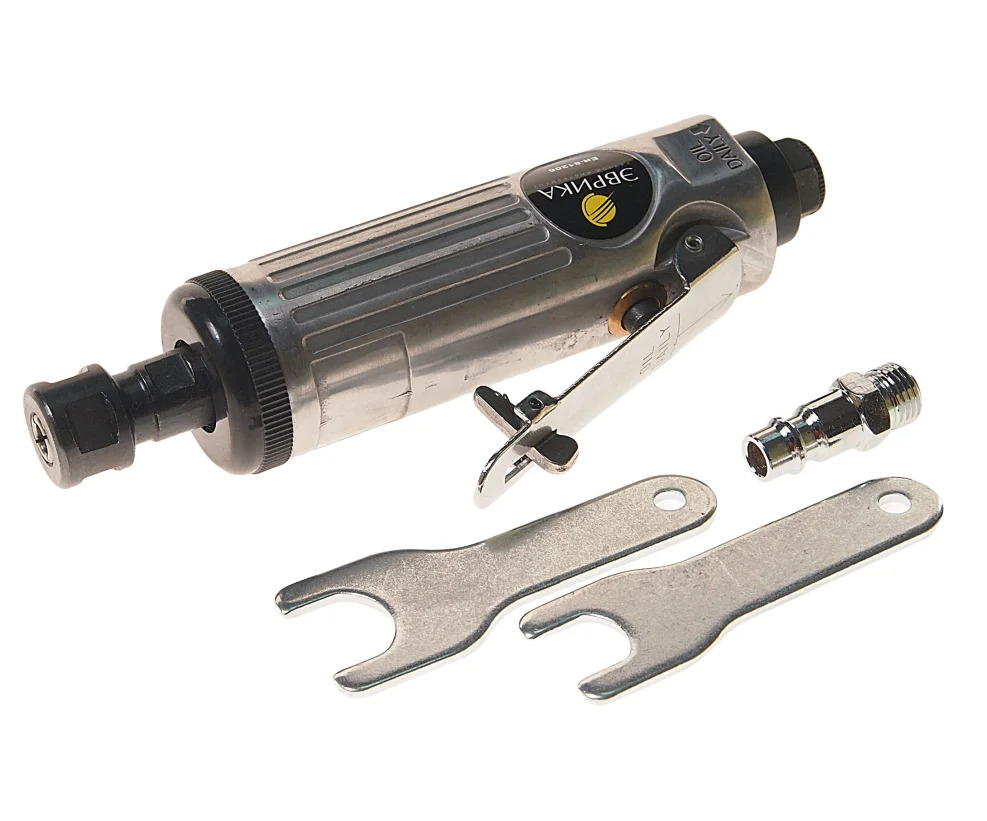 Пневмобормашинка гравер профессиональный с цанговым зажимом 6мм 22000 об/мин ЭВРИКА надежна и удобна в эксплуатации. Предназначена для выполнения шлифовально-зачистных работ. Высокая скорость вращения шпинделя позволяет легко зачищать края деталей. Прочный корпус устойчив к механическим повреждениям. Широкая клавиша "Пуск" способствует комфортной работе.