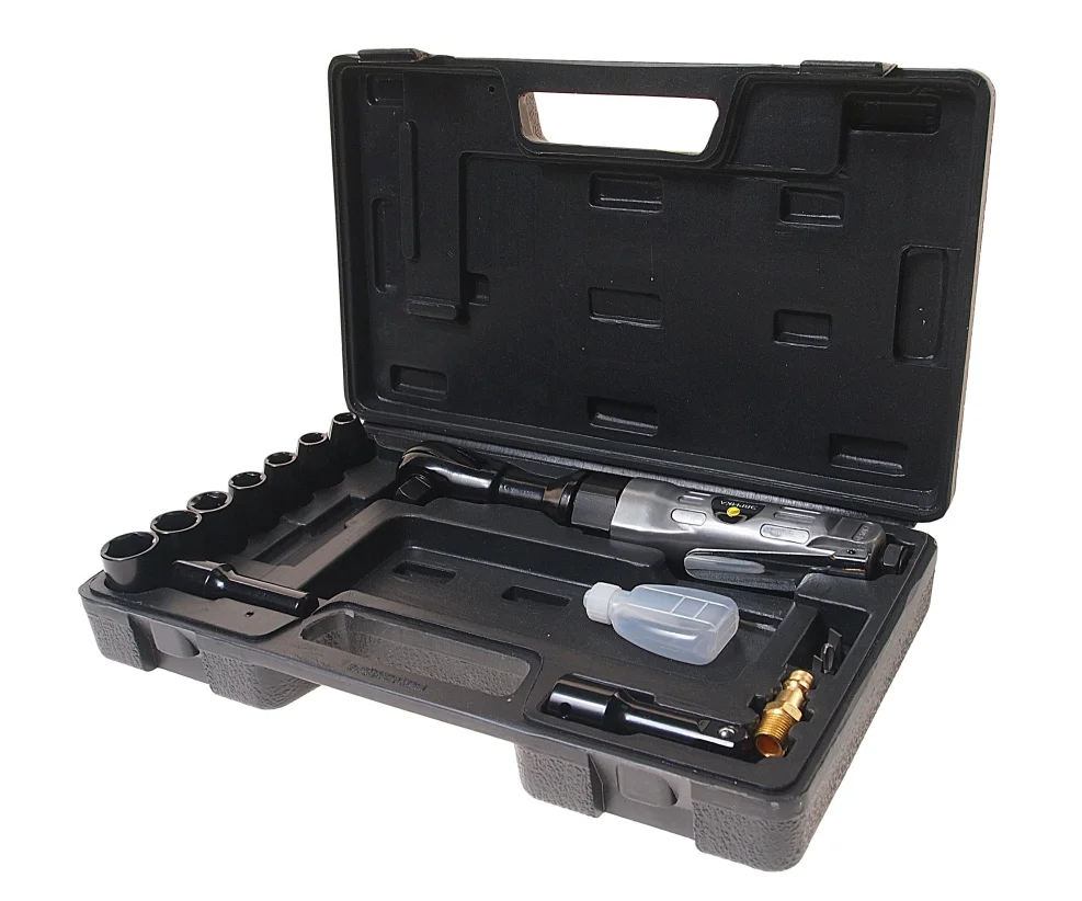 Пневмотрещотка ER‑85220K от «ЭВРИКА» — профессиональный комплект для быстрого и надёжного закручивания/откручивания болтов, винтов и гаек. Идеальна для автосервисов, производственных цехов и мастерских, где требуется высокая производительность и долговечность инструмента.