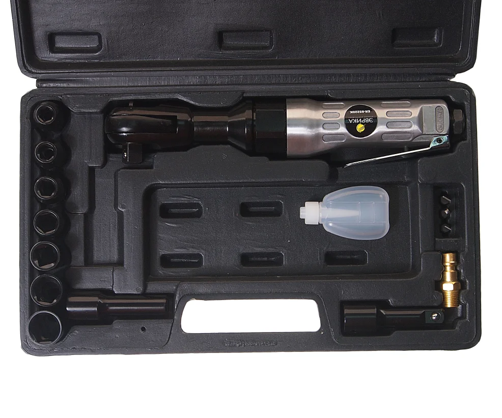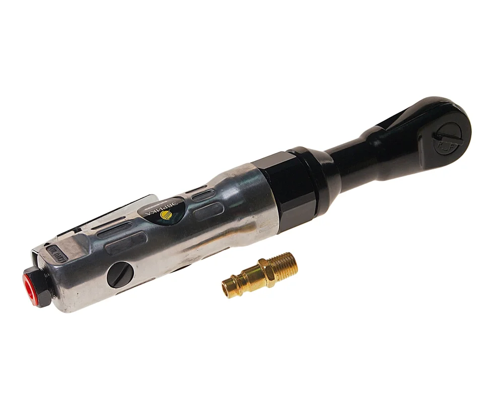 Пневмотрещотка в композитном корпусе с рычажным включателем, двумя режимами работы (1 на откручивание, 1 на закручивание) и функцией плавного старта. Предназначена для ускорения работ по монтажу/демонтажу резьбового крепежа.