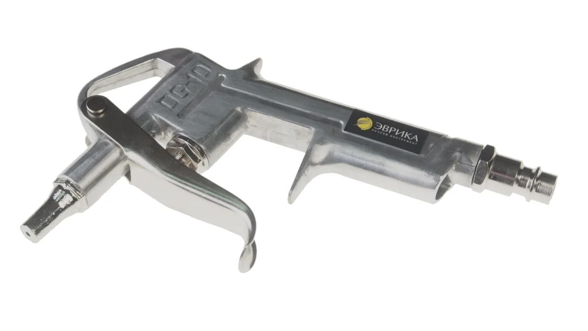 Пистолет продувочный ER-76202 пневматический(входное отверстие 1/4, максимальное давление 6 АТМ, расход воздуха 145 л/мин.) ЭВРИКА применяется для очистки загрязненных поверхностей струей сжатого воздуха. Отличается практичностью и надежностью в эксплуатации. Металлический корпус устойчив к ударам и механическим повреждениям. Специальная петля дает возможность хранить инструмент в подвешенном состоянии.