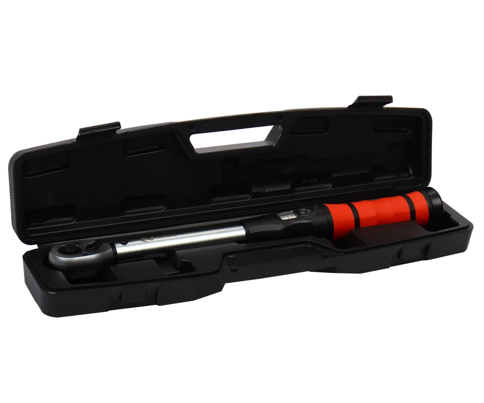 Ключ динамометрический щелчкового типа обеспечивает полный контроль над усилием затяжки резьбовых соединений. Для домашнего и профессионального использования в автосервисах, станциях технического обслуживания и промышленных предприятиях. Имеет простую и надёжную конструкцию. Обеспечивает высокую точность измерений. Применяется при затягивании крепежа с регулируемым значением крутящего момента. Износостойкая нескользящая удобная ручка. Присоединительный квадрат: 1/2"; Крутящий момент : 20 — 100 Nm
