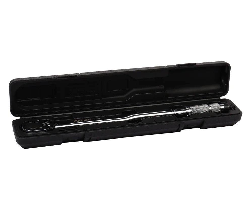 Ключ динамометрический щелчкового типа обеспечивает полный контроль над усилием затяжки резьбовых соединений. Для домашнего и профессионального использования в автосервисах, станциях технического обслуживания и промышленных предприятиях. Имеет простую и надёжную конструкцию. Обеспечивает высокую точность измерений. Применяется при затягивании крепежа с регулируемым значением крутящего момента. Износостойкая нескользящая удобная ручка. Присоединительный квадрат: 1/2"; Крутящий момент : 28 — 210 Nm