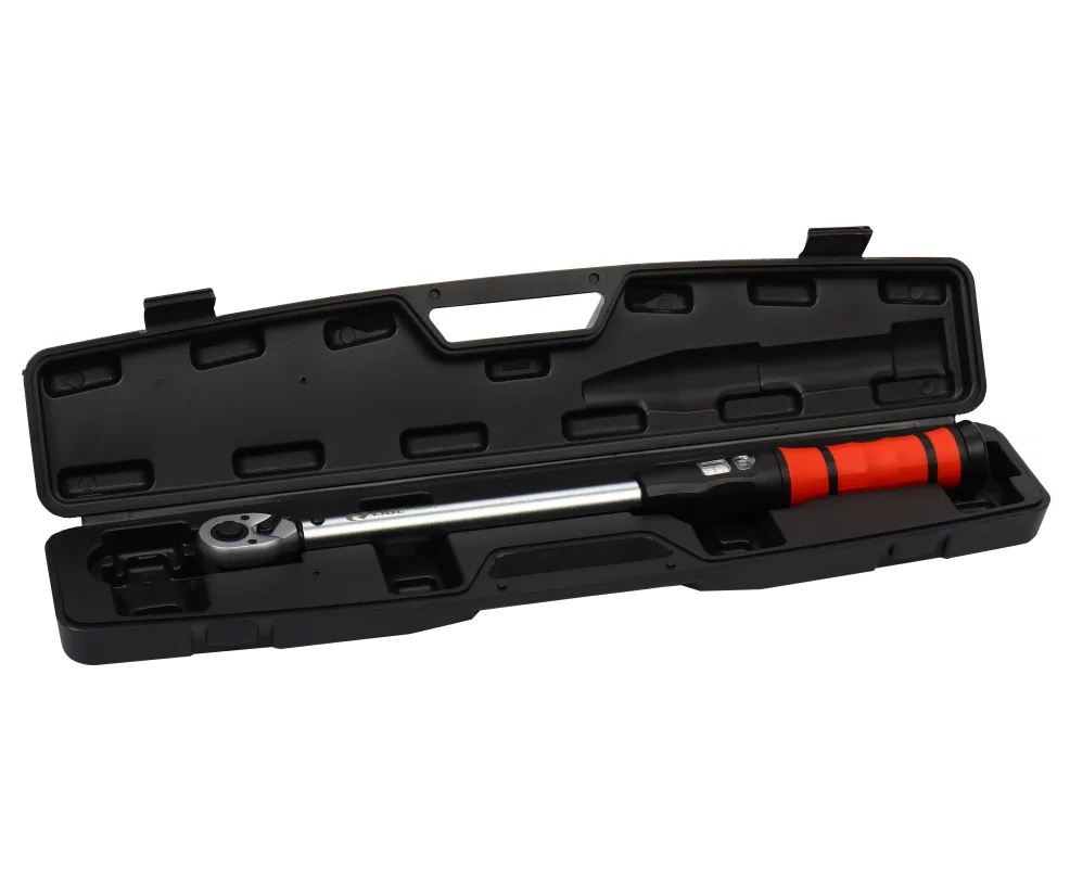 Ключ динамометрический щелчкового типа обеспечивает полный контроль над усилием затяжки резьбовых соединений. Для домашнего и профессионального использования в автосервисах, станциях технического обслуживания и промышленных предприятиях. Имеет простую и надёжную конструкцию. Обеспечивает высокую точность измерений. Применяется при затягивании крепежа с регулируемым значением крутящего момента. Износостойкая нескользящая удобная ручка. Присоединительный квадрат: 1/2"; Крутящий момент : 40 — 200 Nm