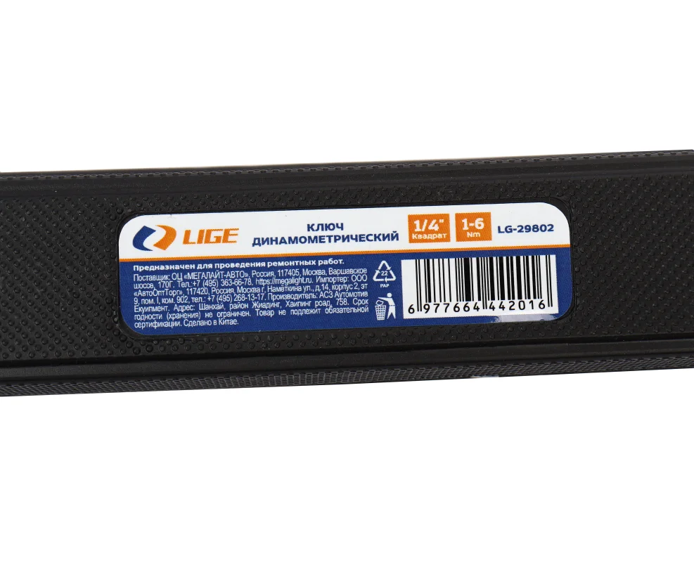 Ключ динамометрический щелчкового типа обеспечивает полный контроль над усилием затяжки резьбовых соединений. Для домашнего и профессионального использования в автосервисах, станциях технического обслуживания и промышленных предприятиях. Имеет простую и надёжную конструкцию. Обеспечивает высокую точность измерений. Применяется при затягивании крепежа с регулируемым значением крутящего момента. Износостойкая нескользящая удобная ручка. Присоединительный квадрат: 1/4"; Крутящий момент : 1 — 6 Nm