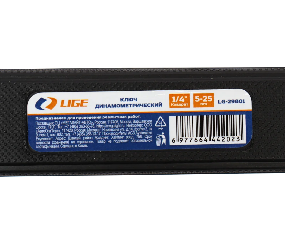 Ключ динамометрический щелчкового типа обеспечивает полный контроль над усилием затяжки резьбовых соединений. Для домашнего и профессионального использования в автосервисах, станциях технического обслуживания и промышленных предприятиях. Имеет простую и надёжную конструкцию. Обеспечивает высокую точность измерений. Применяется при затягивании крепежа с регулируемым значением крутящего момента. Износостойкая нескользящая удобная ручка. Присоединительный квадрат: 1/4"; Крутящий момент : 5 — 25 Nm