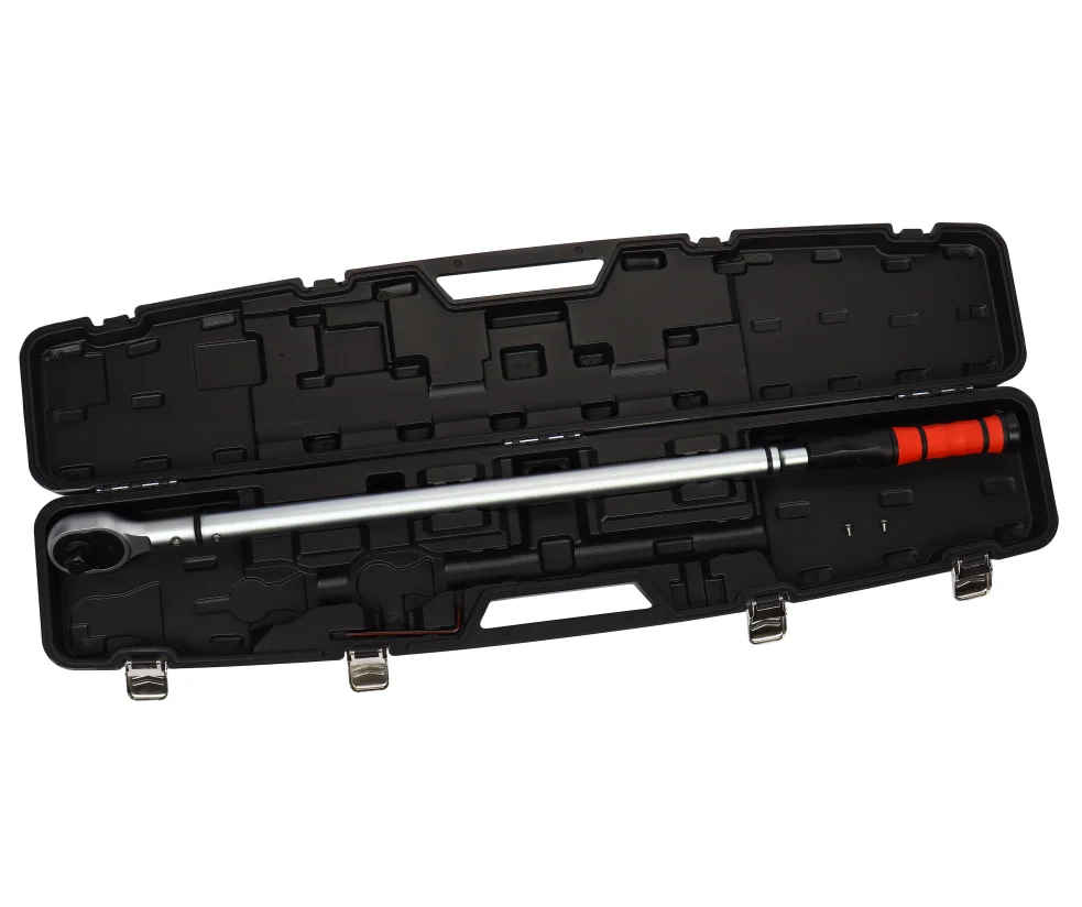 Ключ динамометрический щелчкового типа обеспечивает полный контроль над усилием затяжки резьбовых соединений. Для домашнего и профессионального использования в автосервисах, станциях технического обслуживания и промышленных предприятиях. Имеет простую и надёжную конструкцию. Обеспечивает высокую точность измерений. Применяется при затягивании крепежа с регулируемым значением крутящего момента. Износостойкая нескользящая удобная ручка. Присоединительный квадрат: 3/4"; Крутящий момент : 100 — 600 Nm