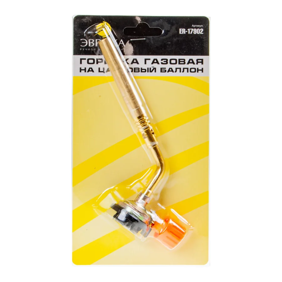Горелка ER-17902 газовая на цанговый баллон(t-1300гр.), в блистере ЭВРИКА Газовая горелка на цанговый баллон предназначена для эксплуатации в бытовых целях. Температура нагрева изделия может достигать 1300 градусов Цельсия. Горелка оснащена пьезоподжигом. Имеет простую конструкцию и отличается долгим сроком службы.