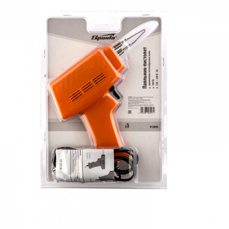 Паяльник Sparta 913095, 100 Вт, 220 В, с удлиненным петлеобразным жалом предназначен для пайки электронных компонентов. Удлиненное жало облегчает работу в условиях нехватки пространства. Лампочка подсветки обеспечивает дополнительное освещение зоны пайки, что способствует повышению качества работ. Паяльник рассчитан на непрерывную работу в течение 20-25 мин. Прибор будет полезен радиолюбителям и мастерам домашнего ремонта.