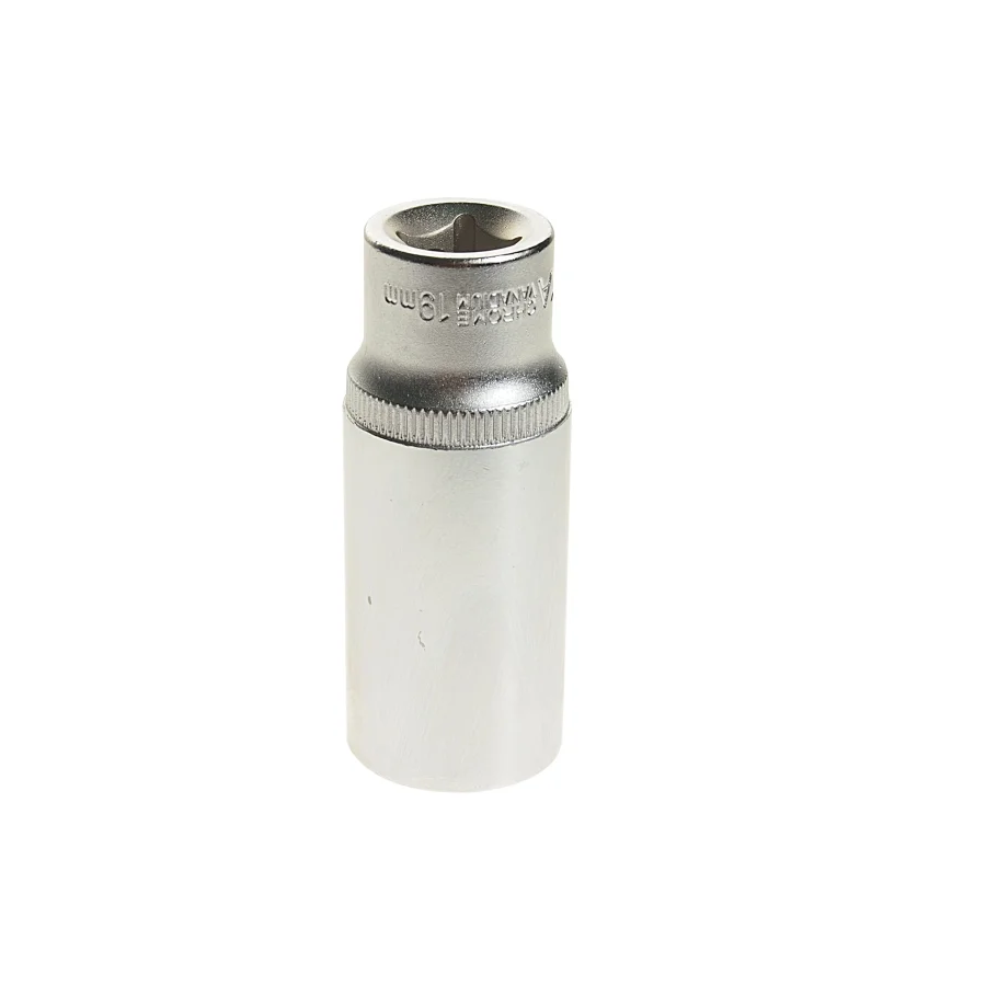 Головка торцевая 19мм 3/8" 6-гранная глубокая L=70мм ЭВРИКА ER-91014 Оптимальным материалом для изготовления надежных и долговечных головок является сталь с легирующими хром-ванадиевыми добавками. В связи с тем, что ударные головки подвергаются наибольшим нагрузкам, они производятся из хром-молибденовой стали, придающей повышенную прочность изделиям. Технические характеристики: Тип крепления: квадрат с подпружиненным шариком. Посадочный квадрат: 3/8 дюйма Система измерения: метрическая Форма наконечника: внутренний(торцевой) шестигранник Материал: CrV Глубока: да