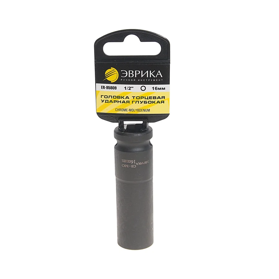 Головка торцевая ER-95711H 18мм 1/2" 6-гранная ударная L=40мм оптимальным материалом для изготовления надежных и долговечных головок является сталь с легирующими хром-ванадиевыми добавками. В связи с тем, что ударные головки подвергаются наибольшим нагрузкам, они производятся из хром-молибденовой стали, придающей повышенную прочность изделиям. Технические характеристики: Материал: хром-молибденовая сталь Посадочный квадрат: 1/2" Размер головки: 18 мм Длина: 40 мм Вес: 0,090 кг