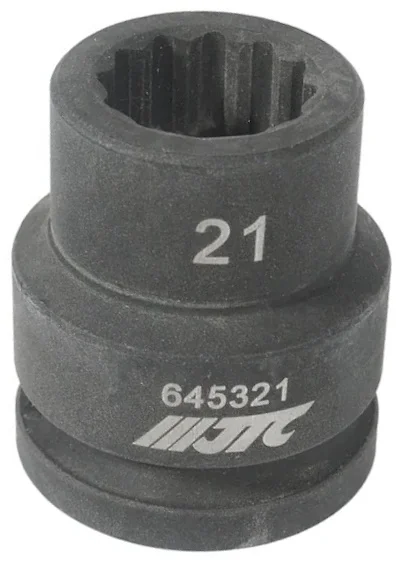 - Головка торцевая ударная 12-гранная 3/4" х 21мм., JTC-645321 предназначена для монтажа/демонтажа крепежных элементов имеющими 6 и 12 гранный рабочий профиль с помощью ручного инструмента, гайковерта.