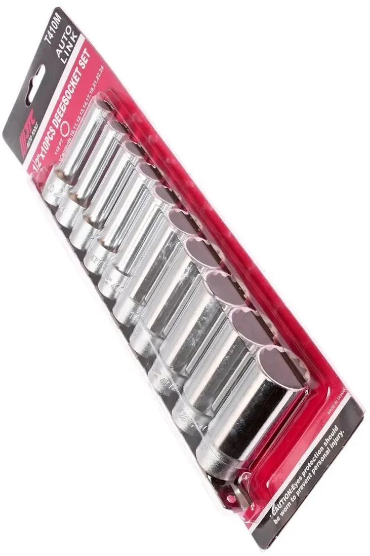 Набор торцевых головок 1/2" 12-ти гранных 10-24мм., глубоких L=76мм., 10 предметов, JTC-T410M.