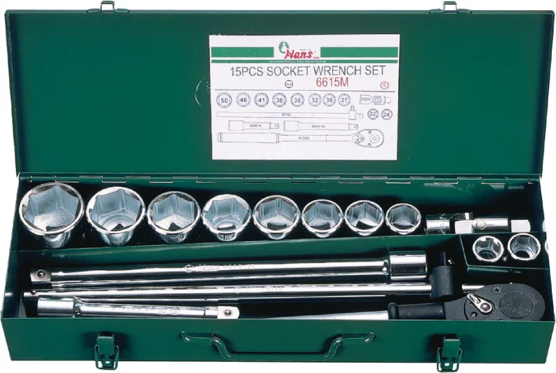 Набор 6615M 6-гранные торцевые головки с аксессуарами 3/4'', 15 предметов:
