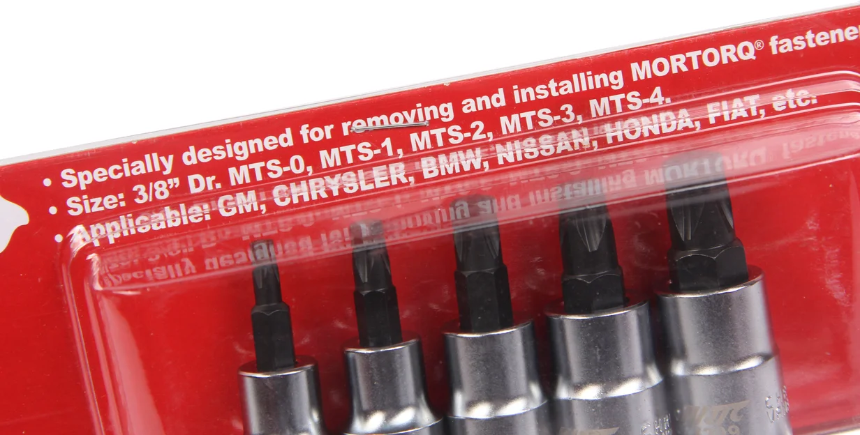 Набор из 5 бит со специальным крестообразным шлицом MORTORQ который применяется при обслуживании автомобилей Jeep, Honda, BMW, Nissan, Fiat, Chrysler, General Motors и множество других моделей авто.